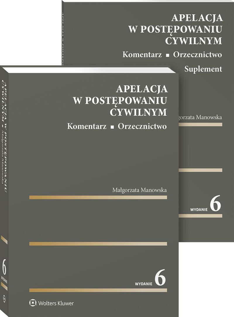 | Opis | W publikacji zaprezentowano całość zagadnień związanych z apelacją jako środkiem zaskarżenia – z uwzględnieniem zarówno apelacji zwykłej, jak i apelacji uproszczonej – oraz z postępowaniem apelacyjnym. Szczegółowo omówiono konstrukcję apelacji, jej wymagania formalne jako pisma procesowego oraz jako środka odwoławczego. Książka składa się z dwóch części. Pierwsza z nich zawiera:• klasyczny podartykułowy komentarz do przepisów art. 367–391 i 505(8)–505(13) k.p.c., • wybór najważniejszych orzeczeń ze wskazaniem dominującej linii orzeczniczej, • schematy ułatwiające zrozumienie zasad postępowania apelacyjnego, uwzględniające m.in. występowanie w tym postępowaniu współuczestnictwa procesowego. W drugiej części – suplemencie – umieszczono:• przykłady i kazusy wyjaśniające funkcjonowanie wielu instytucji z zakresu postępowania odwoławczego, • przykłady konstruowania zarzutów i wniosków apelacji oraz wzory poszczególnych elementów apelacji, • wzór prawidłowo napisanej apelacji opatrzony szczegółowym komentarzem. Publikacja jest przeznaczona dla pełnomocników procesowych, sędziów i wszystkich, którzy w swojej pracy zawodowej sporządzają apelacje i biorą udział w postępowaniu apelacyjnym. Stanowi nieodzowną pomoc dla aplikantów, w szczególności dla osób przystępujących do egzaminu zawodowego radcowskiego, adwokackiego i sędziowskiego. |