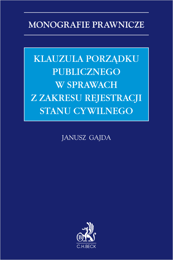 Publikacja porusza problematykę klauzuli porządku publicznego, ze szczególnym uwzględnieniem jej stosowania w sferze rejestracji stanu cywilnego.