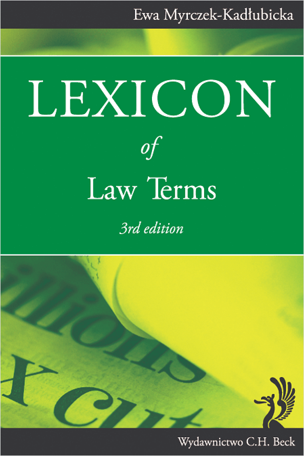 Trzecie wydanie Leksykonu terminów prawnych jest adresowane do studentów prawa i ekonomii, pracowników kancelarii prawniczych, tłumaczy przysięgłych, przedsiębiorców, nauczycieli specjalistycznego języka angielskiego oraz wszystkich zainteresowanych pogłębianiem swej wiedzy z zakresu tekstów prawnych i prawniczych. Książka ta zawiera dziesięć rozdziałów obejmujących słownictwo z zakresu prawa cywilnego, spółek handlowych, rynków kapitałowych, rachunkowości, podatków oraz ceł. Dodano dwa nowe rozdziały poświęcone prawu rodzinnemu oraz procedurze cywilnej