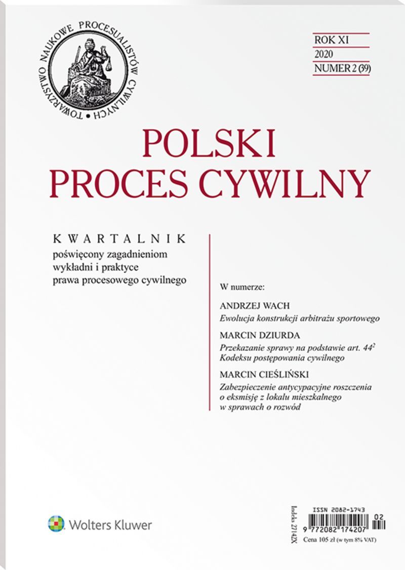 | Spis treści | ARTYKUŁY I STUDIA Andrzej WachEwolucja konstrukcji arbitrażu sportowego , str. 177 Agnieszka GołąbJurysdykcja krajowa w sprawie o wydanie europejskiego nakazu zabezpieczenia na rachunku bankowym , str. 202 Marcin DziurdaPrzekazanie sprawy na podstawie art. 442 Kodeksu postępowania cywilnego , str. 235 Marcin CieślińskiZabezpieczenie antycypacyjne roszczenia o eksmisję z lokalu mieszkalnego w sprawach o rozwód , str. 273 Magdalena HiltTeoria utraty szansy a ciężar dowodu w prawie belgijskim , str. 291 Robert TalagaRozliczenie kuratora spadku działającego przed sądem administracyjnym , str. 302 NA MARGINESIE ORZECZNICTWA Mateusz KotowiczPotwierdzenie przez następcę procesowego czynności procesowej dokonanej przez nienależycie umocowanego pełnomocnika poprzednika. Glosa do postanowienia Sądu Apelacyjnego w Katowicach z 11.09.2012 r., V ACz 629/12 , str. 316 Z ŻYCIA NAUKOWEGO PROCESUALISTÓW CYWILNYCH Łukasz CzarneckiSprawozdanie z Ogólnopolskiej Konferencji Naukowej „Nowy kształt polskiego procesu cywilnego”, która odbyła się w Łodzi w dniu 6.12.2019 r. , str. 328 |