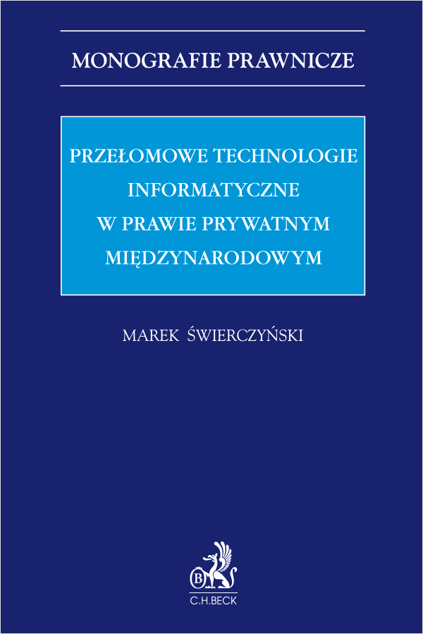 Monografia autorstwa Marka Świerczyńskiego pt. Przełomowe technologie informacyjne w prawie prywatnym międzynarodowym to dogłębna analiza wybranych aspektów prawa prywatnego międzynarodowego w świetle innowacji technologicznych, takich jak sztuczna inteligencja, cloud computing, blockchain i wirtualne światy. Szczególny nacisk położono na rosnące znaczenie narzędzi legal tech dla praktyki stosowania norm kolizyjnych prawa prywatnego międzynarodowego.